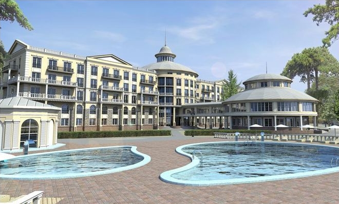 В структуре объекта - пятиэтажный жилой корпус, лечебный комплекс, включающий грязелечебницу, водолечебное, физиотерапевтическое отделения, бассейн, джакузи. В будущем предусмотрено также возведение коттеджей квартирного типа для проживания семей, культурно-развлекательного корпуса - с кафе-баром, танцевальным залом, видео-конференц-залом на 70 мест.